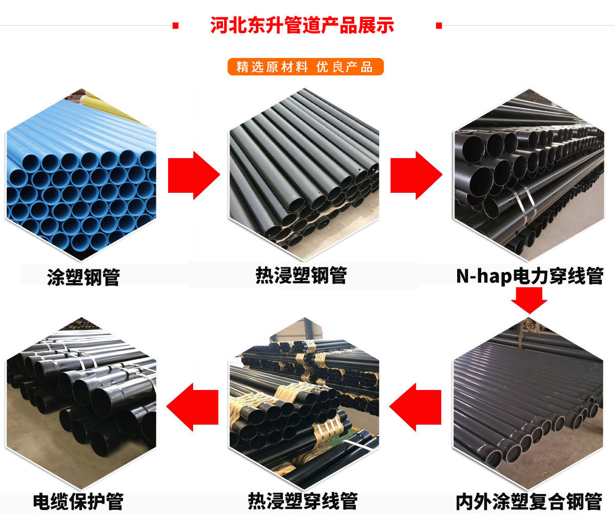 河北東升管道制造有限公司主營:熱浸塑鋼管,N-hap電力穿線管,電纜保護(hù)管等產(chǎn)品